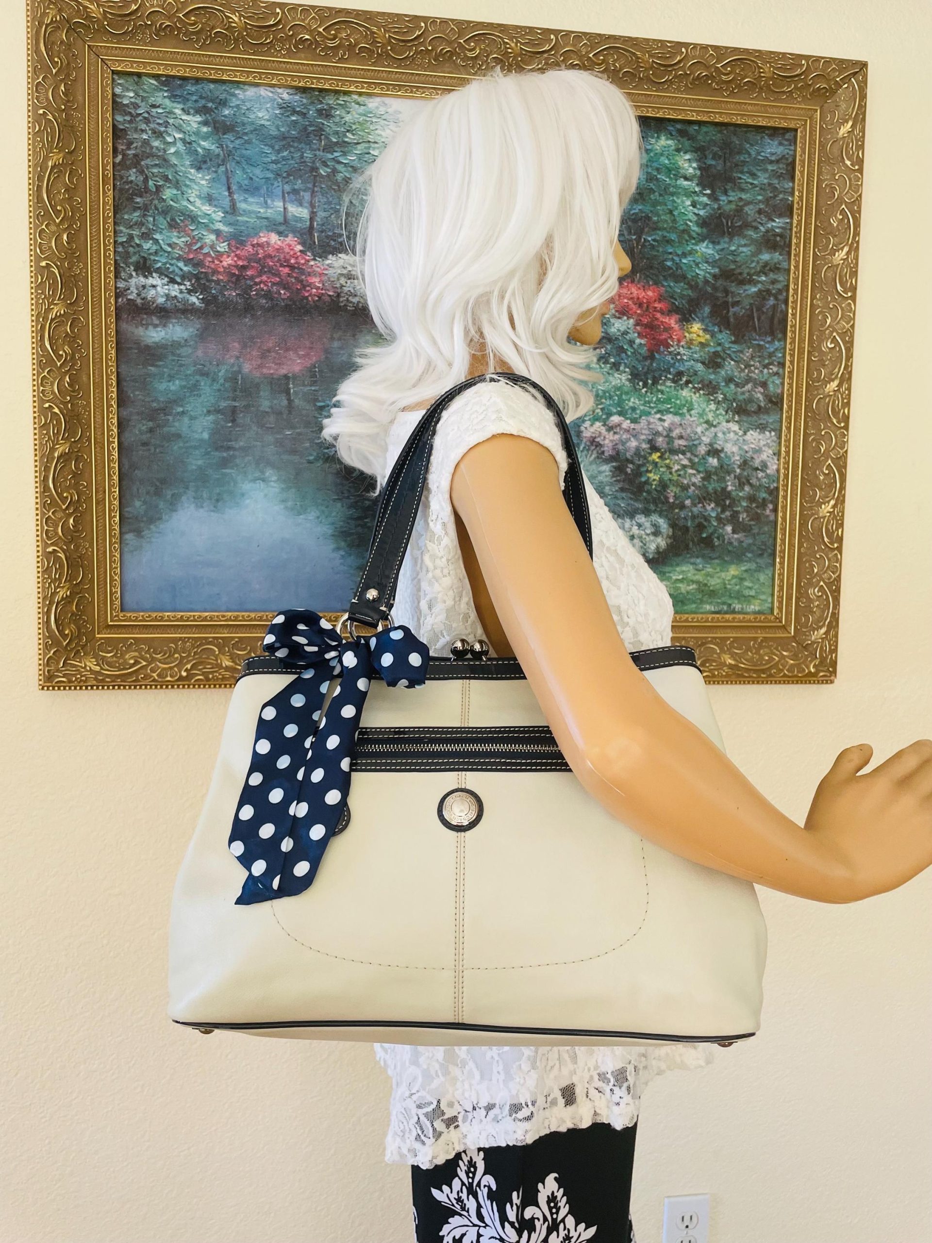 Black and White Leather Tote Bag