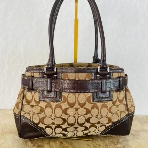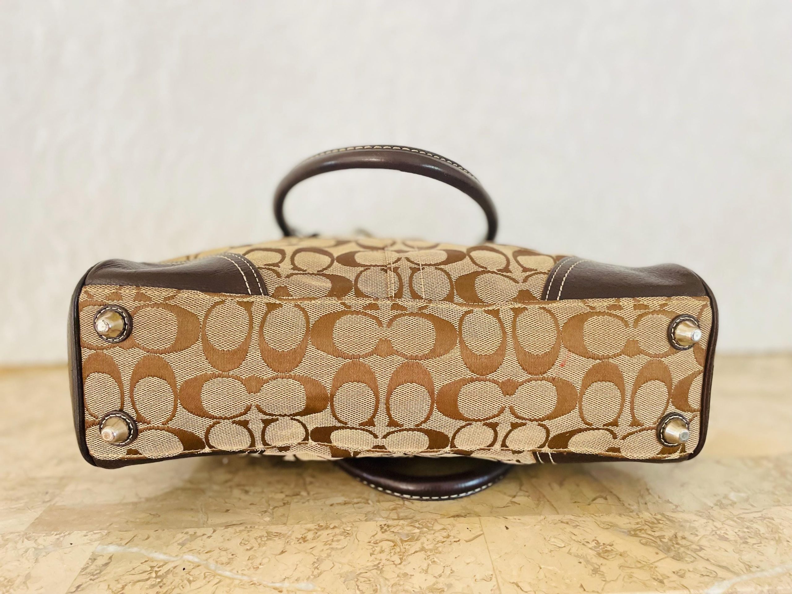 Color-blocked stripes: Contrasting brown leather and the signature patterned stripes add visual interest, elevating this bag beyond a simple neutral palette.