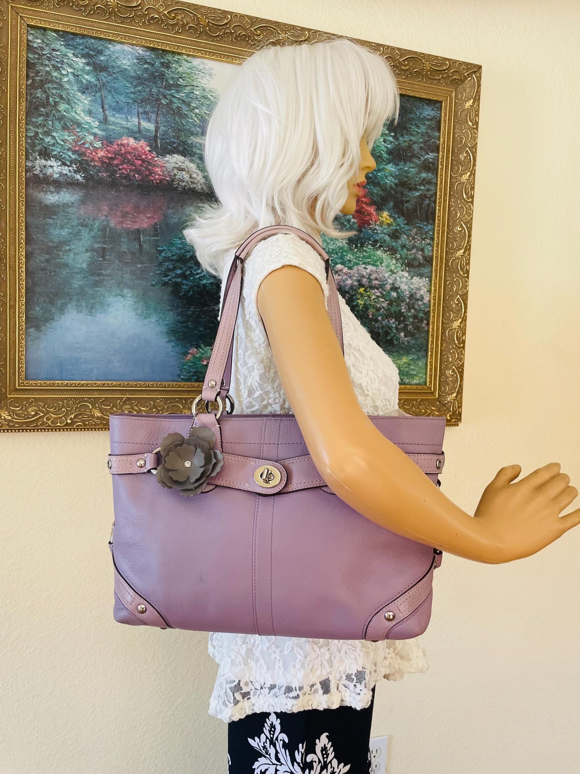Silver-Tone Hardware: Polished silver-tone rings, buckles, and clasps complement the lavender leather beautifully. These elements blend functionality (adjustable shoulder strap, secure closure) with decorative elements, enhancing the overall refined aesthetic.