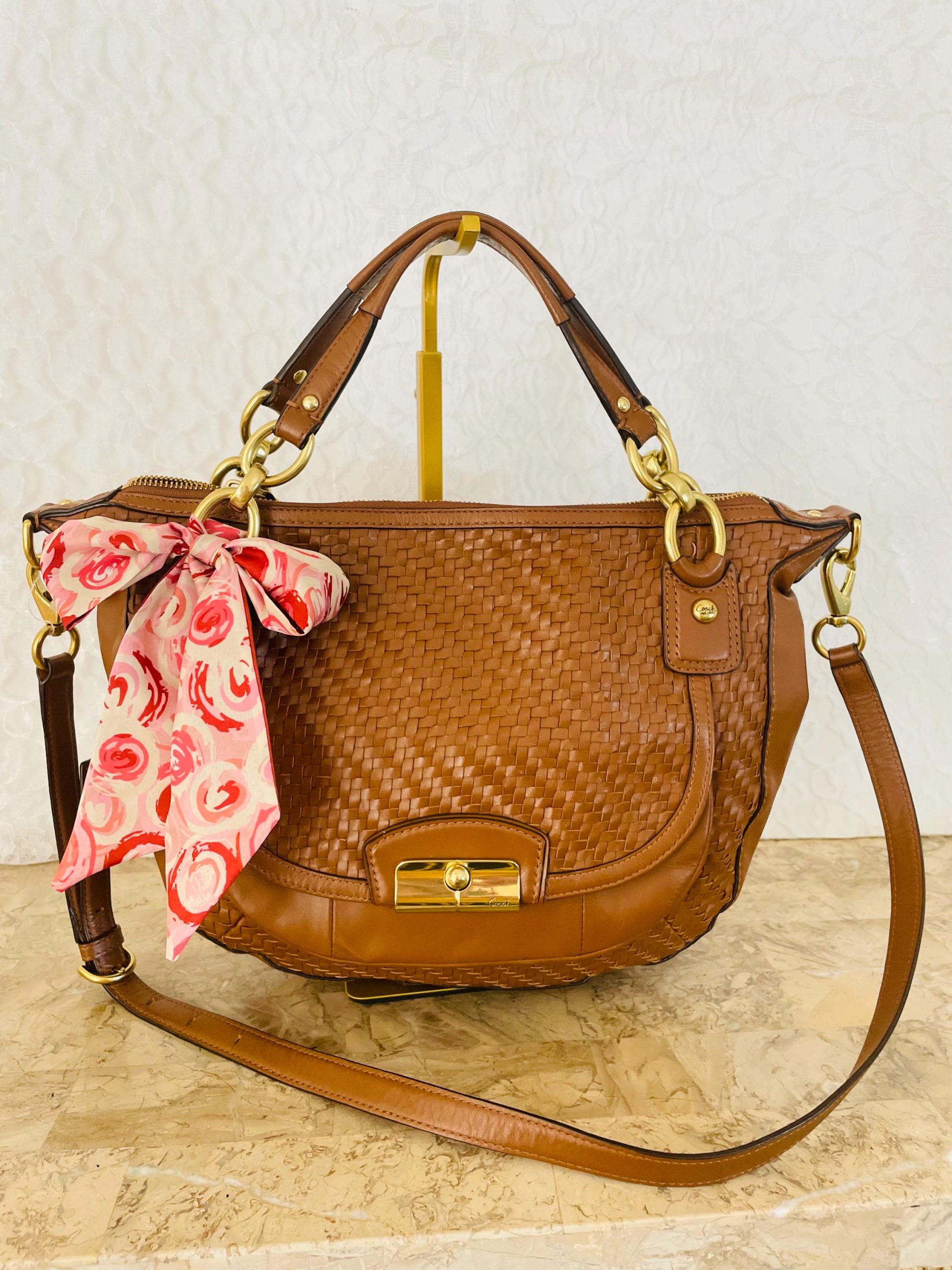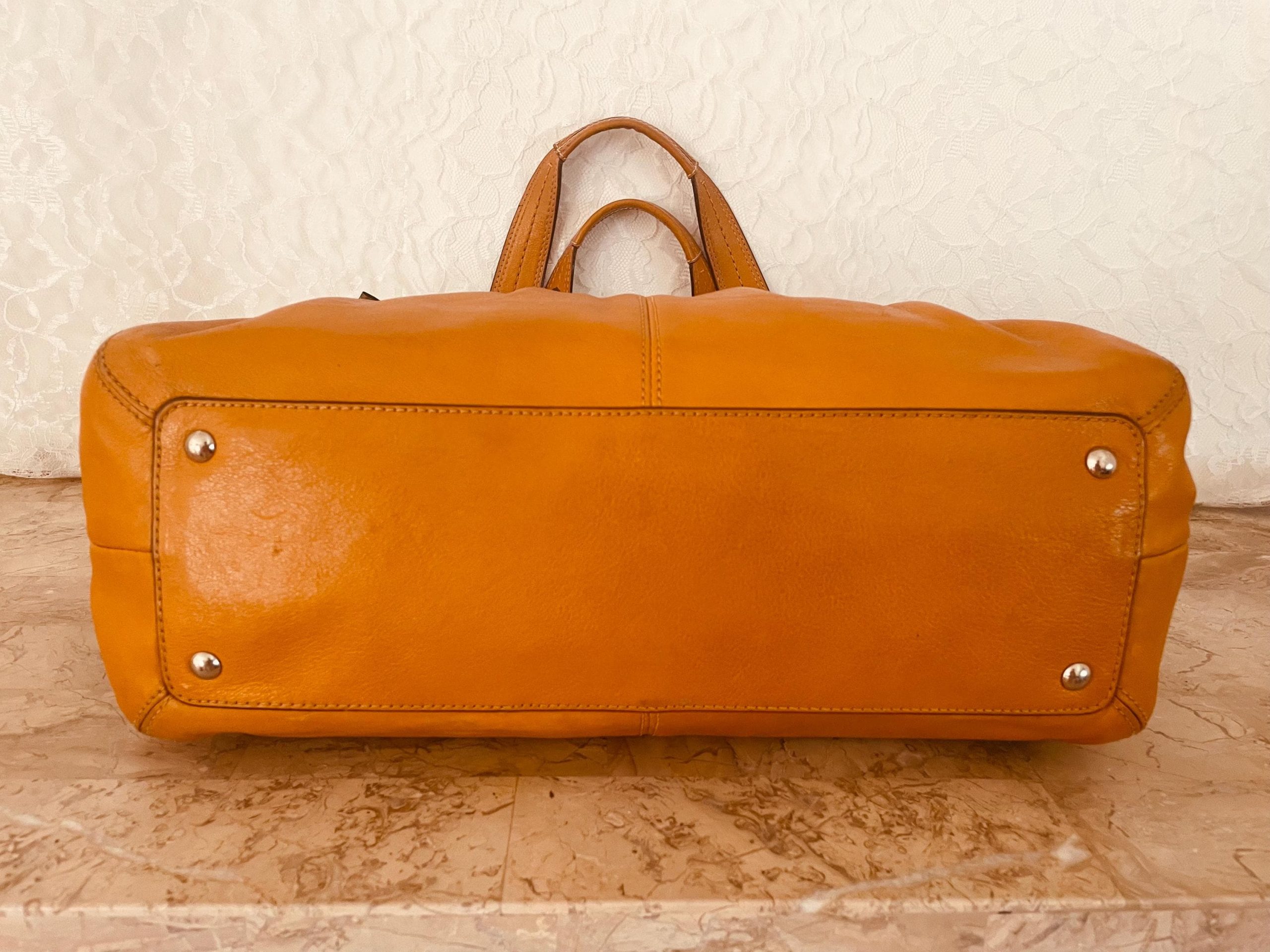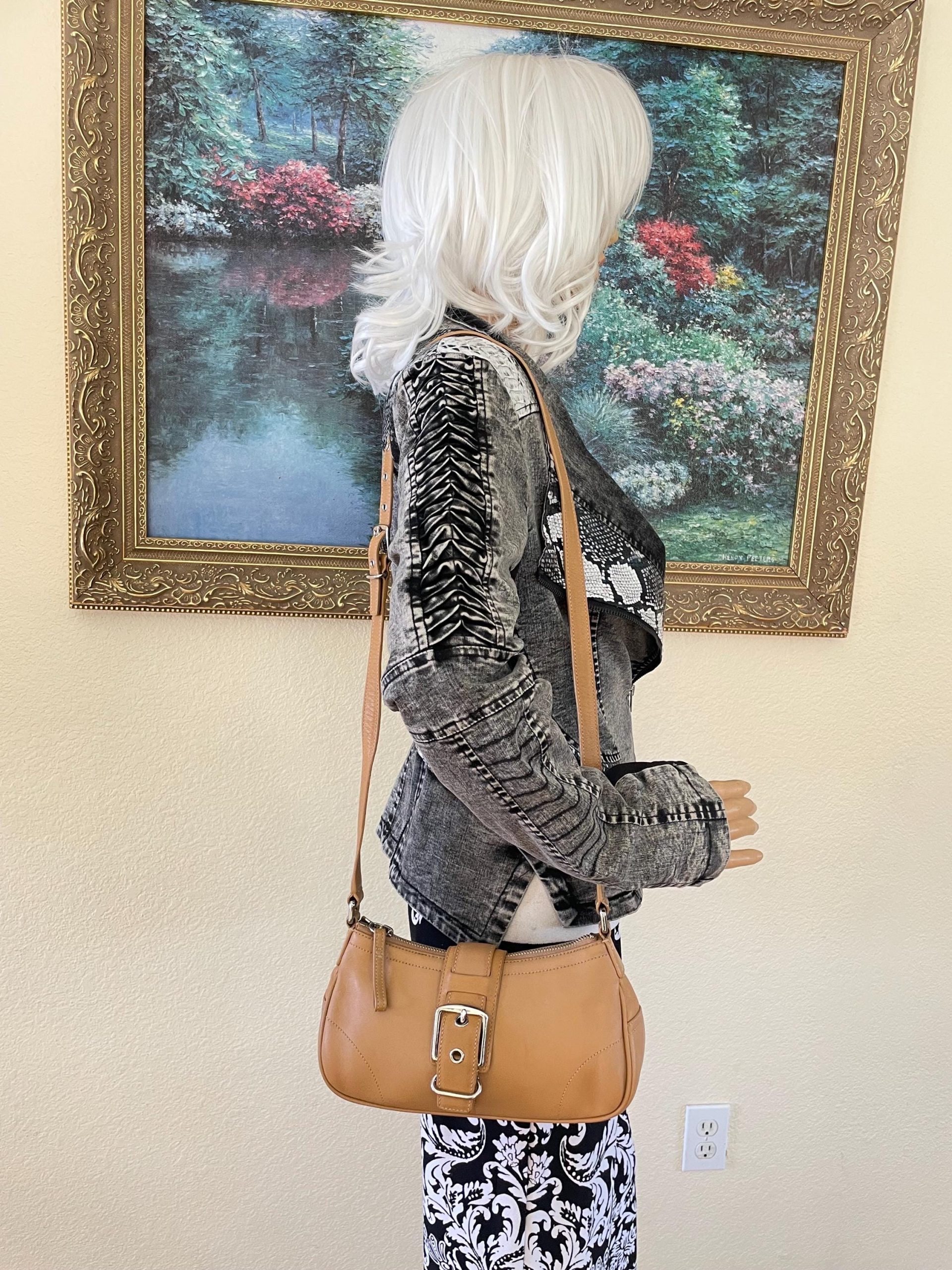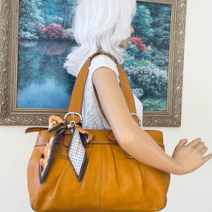 Crafted from smooth, premium leather in a warm caramel hue, the leather’s polished finish offers a luxurious feel and durability perfect for everyday wear. Its neutral color palette makes it versatile and easily complements any outfit.