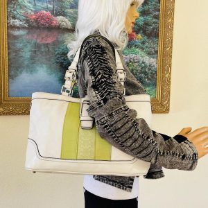 Structured Silhouette: The spacious, structured tote shape features clean lines and subtle contrast stitching. The double top handles are reinforced for comfort and style.